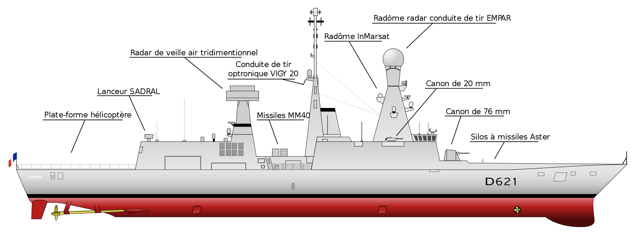La frégate Forbin est une frégate de défense aérienne de 152 m de long, navire-jumeau du Chevalier Paul de la classe Horizon de la Marine nationale, qui a été mise en service en 2010. Ce type de navire a pour principale mission l'escorte et la protection d'un groupe aéronaval constitué autour d'un porte-avions, généralement le Charles-de-Gaulle de la marine nationale ou l'un des porte-avions de l'US Navy2 ou d'une opération amphibie menée par des bâtiments de projection et de commandement. Sa spécialité est le contrôle de la circulation aérienne en zone de guerre mais il peut également intervenir dans un contexte de crise (évacuation de ressortissants, renseignement, intervention de commandos), en protection de navires peu ou pas armés. Les frégates Horizon telles que le Forbin sont les plus puissants bâtiments de surface que la France ait jamais construits (à l'exception des porte-avions).